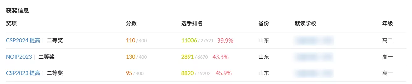 也是成功达成连着三场考试(CSP-S 2023 / NOIP 2023 / CSP-S 2024)都是二等奖的成就。