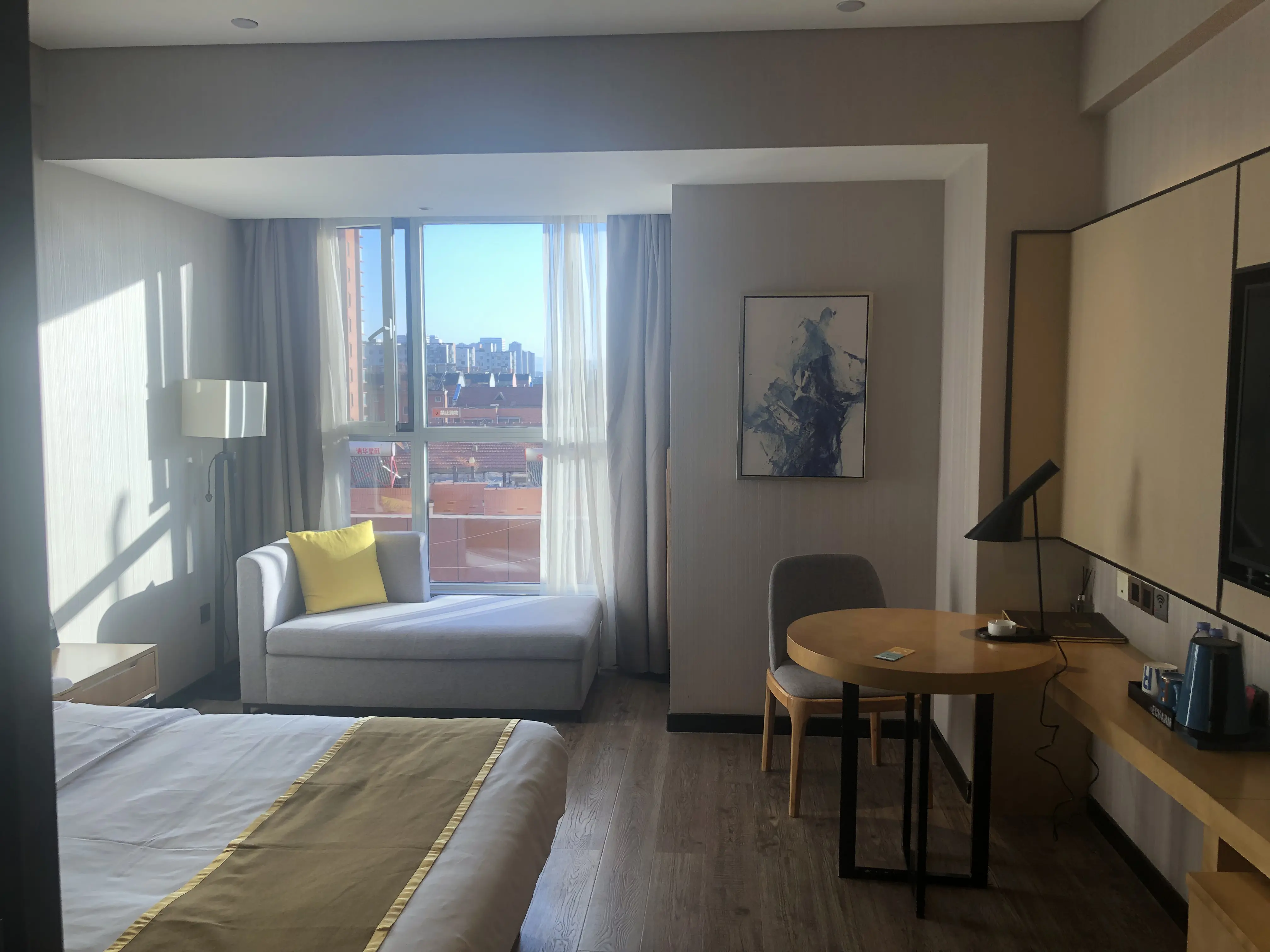 被酒店的小度智能语音音箱吓了一跳(这货接上电自动开始说酒店的欢迎语,被我一套长按+关机解决了),又发现房间一点也不隔音,房间的香水味有点呛人,差评。